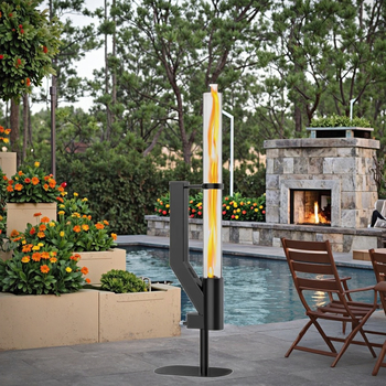 Design moderne Acier au carbone Fusée de patio Cheminée Tube de feu Colonne Poêle à granulés avec torche en fer pour villas